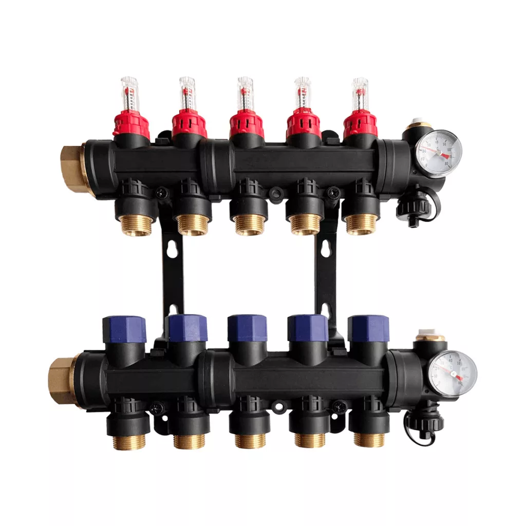 A mennyezet hűtés és fűtés osztó egy erős műanyagból készült osztó-gyűjtő. A műanyag háznak köszönhetően nem csapódik ki rajta a pára hűtési üzemmódban, mint tenné azt egy rozsdamentes osztó gyűjtő esetén. Az áramlásmérőknek köszönhetően - a rozsdamentes padlófűtés osztóhoz hasonlóan - itt is minden egyes kört beszabályozhatunk. Alkalmazható mennyezet hűtés és fűtés, de padlófűtés esetén is.